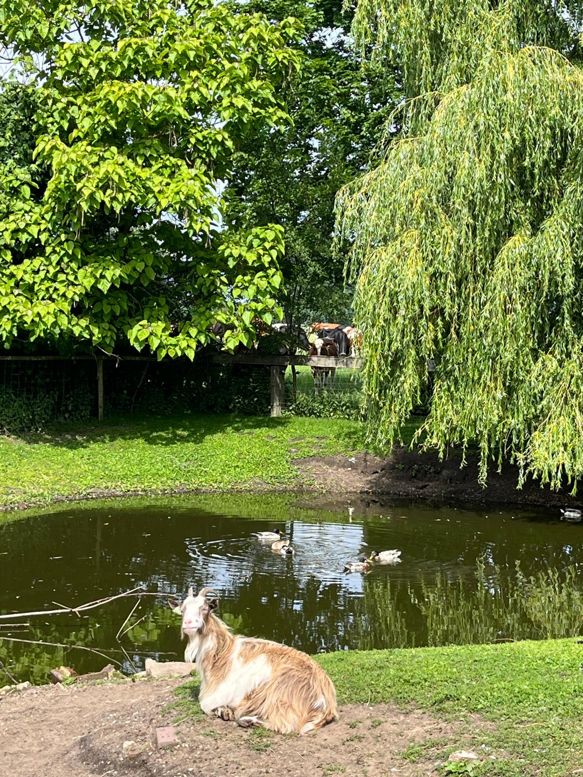 We hebben Nederlandse landgeiten en dwerggeiten die graag rondneuzen en altijd nieuwsgierig zijn als er iemand langskomt. De kippen en eenden scharrelen lekker hun eigen gang en zorgen voor de bekende boerderijsfeer. Onze katten zie je overal en nergens, meestal op hun eigen tempo, maar vaak wel in voor wat aandacht.